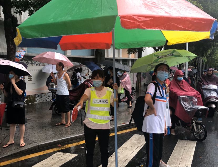“自从2016年开始,这支凝聚家校爱心的志愿护安护畅队伍,已经成为了我们学校门外一道绿色的风景线。”象达中学副校长谢岳豹接受记者采访时自豪地说。