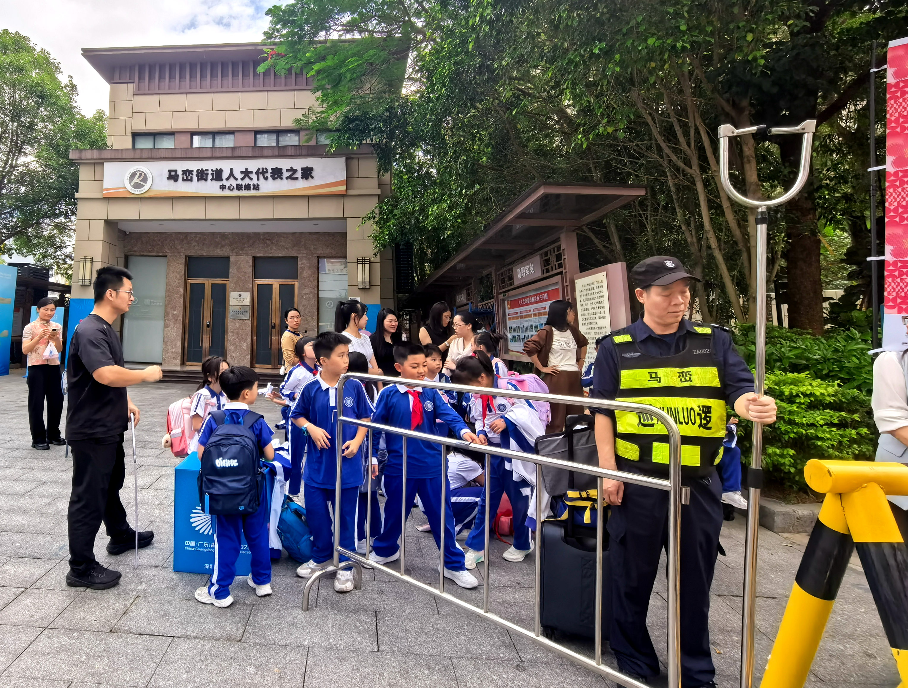 辖区居民原先的生活秩序同样需要正常保障。在酒店实施安保围合管理的同时,如何保障周边弘金地国际学校900余名师生顺畅通行和80名教职工的停车需求,成为一道现实课题。马峦街道酒店专班坚持“安全为要、便民为本”的原则,由专班安全保障组马峦派出所牵头,联合街道、学校、酒店多方会商,创新推出“分时段、分批、班主任带队”的学生接送方案,开辟外围专用通道,并实行校内停车场错峰共享。一系列举措既保障了赛事核心区的安全,又最大限度减少了对周边居民日常生活的干扰,实现了赛事保障与民生需求的和谐共融。