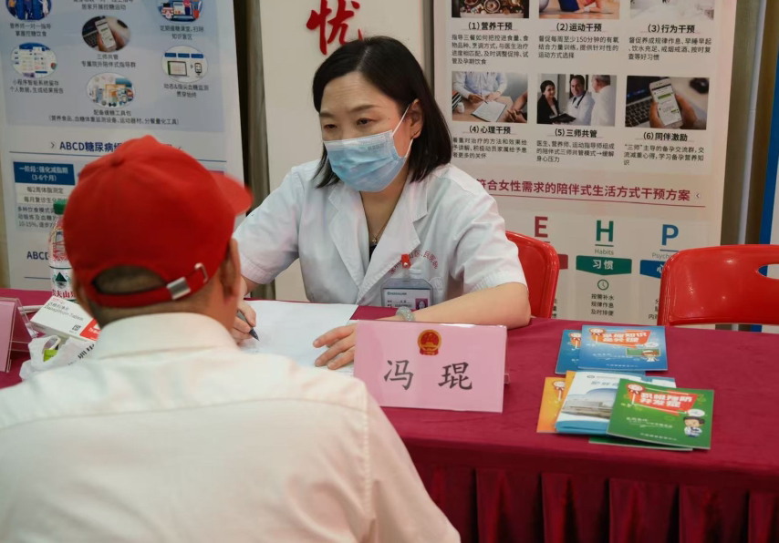 座谈交流会结束后,“联合国糖尿病日”大型公益义诊活动随即开展。义诊现场暖意融融,由内分泌代谢病科专家、社康主任、专科护士、营养师及志愿者组成的专业团队,为居民提供了全方位、多层次的健康服务。