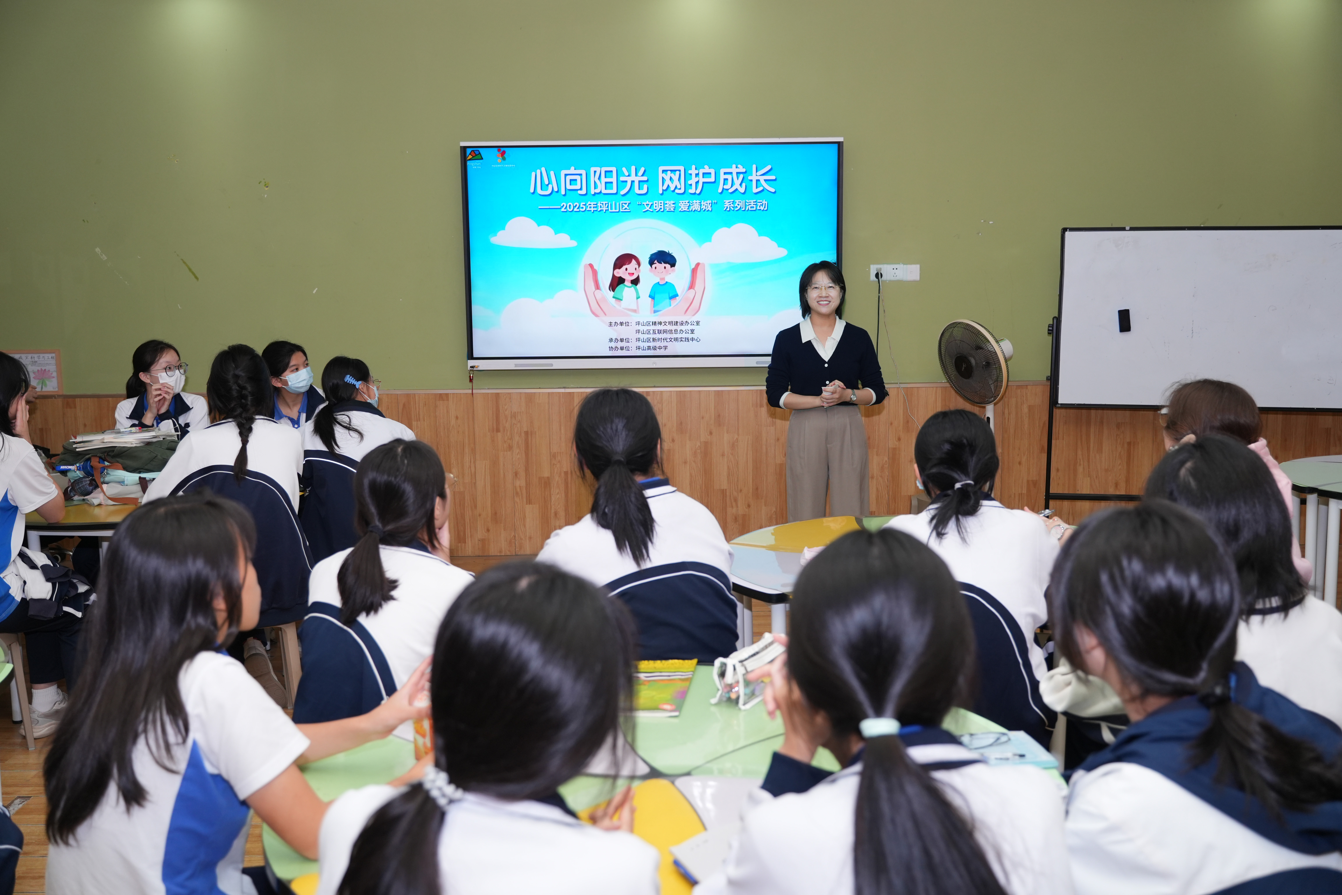 12月3日,坪山高级中学内气氛热烈且温馨,一场以“心向阳光 网护成长”为主题的2025年坪山区“文明荟 爱满城”系列活动在此精彩上演。此次活动由坪山区委宣传部、坪山区精神文明建设办公室、坪山区互联网信息办公室主办,旨在从文明实践的全新视角出发,以丰富多元的形式为未成年人送上心理关怀与网络安全知识盛宴。