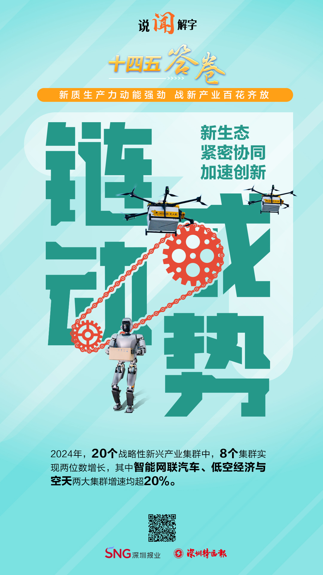 一组海报,全面展示深圳“十四五”发展成果,展现出战略性新兴产业不断跃升,新质生产力迸发出强劲发展动能。
