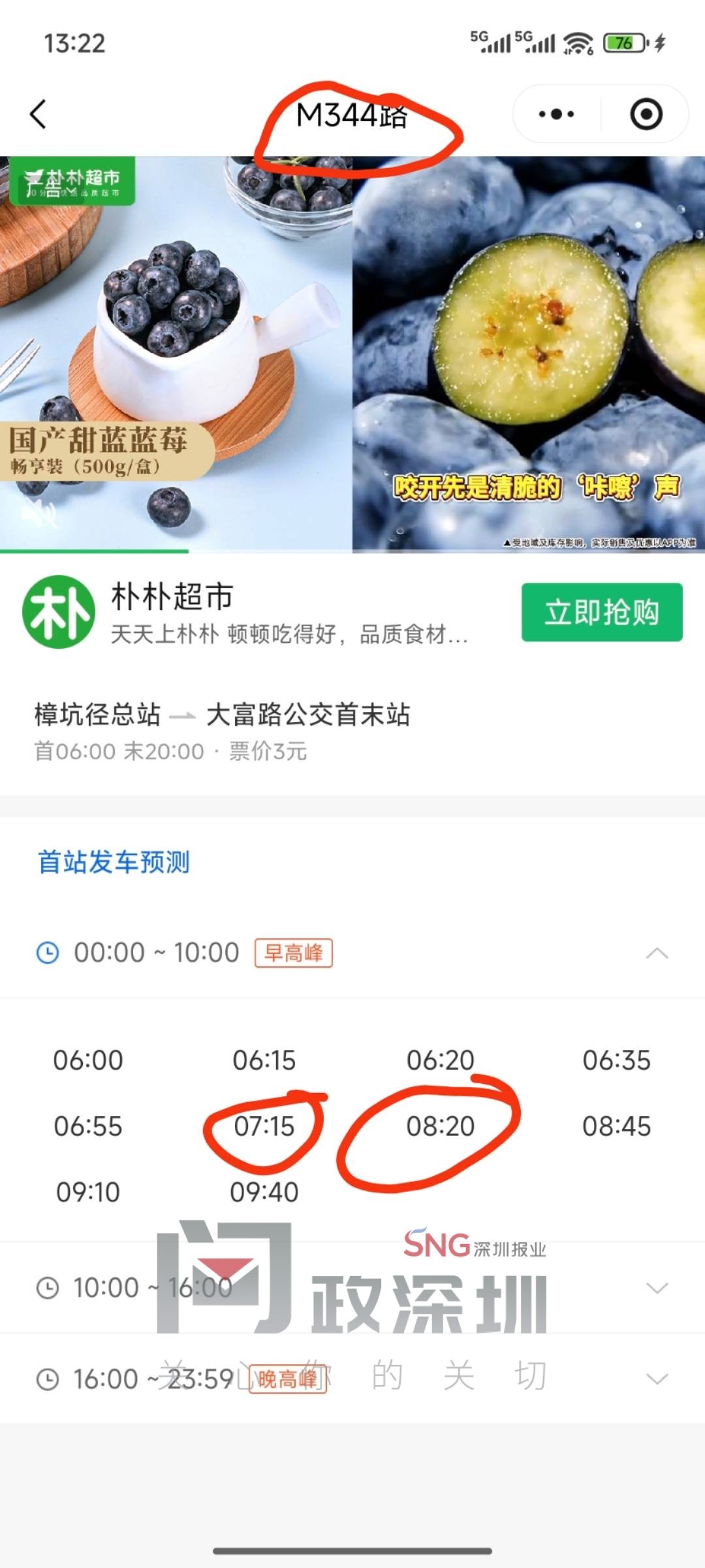 据深圳市交通运输局官网显示,M344路由深圳市西部公共汽车有限公司运营,往返于大富路公交首末站与章坑径总站,单向行程约1小时15分钟。双向线路略有不同,如市民反映的华章新筑小区就只有单方向设置了站点。记者在西部公交官网未找到该线路的班次表,官方客服回应称可通过电话查询班次,但没有公开发布的时刻表。客服同时确认,章坑径总站早间7点15分后确实存在超过1小时的班次空档,原因是车辆数量有限,该班次双向按20分钟间隔发车后,每天都会出现几次“无车可用”的情况,导致长时间间隔。