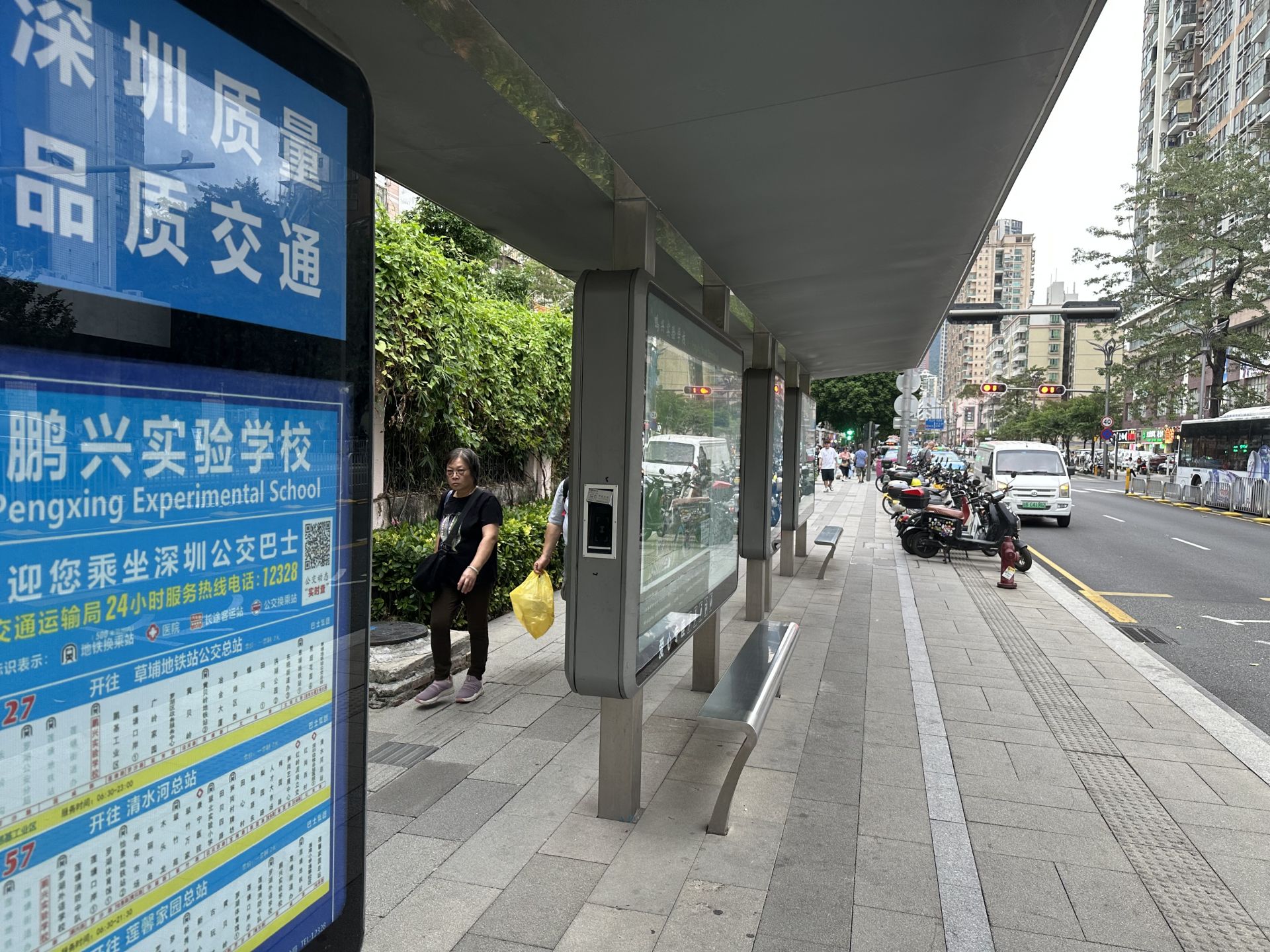 家住罗湖莲塘街道的市民刘先生告诉记者,他平日里经常会乘坐公交出行。2021年,他发现莲塘片区各道路建设了多个智能公交站。相较于普通的公交站台,这些智能公交站台多了一块电子屏,可以显示公交车的到达时间,市民可以更便捷地了解公交车的运行信息。