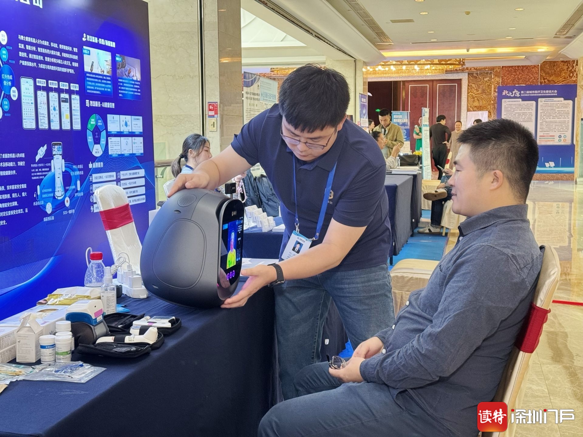 观众在用健康AI机器人进行健康检测。