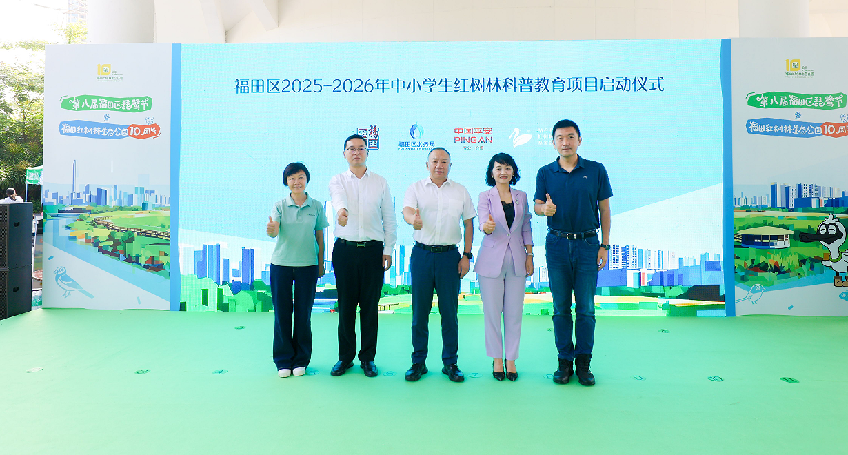 活动现场,福田区教育局、福田区水务局、平安集团、红树林基金会四家单位共同启动“福田区2025-2026年中小学生红树林科普教育项目”。平安集团将资助福田区200个班级的中小学生走进红树林湿地开展自然教育。