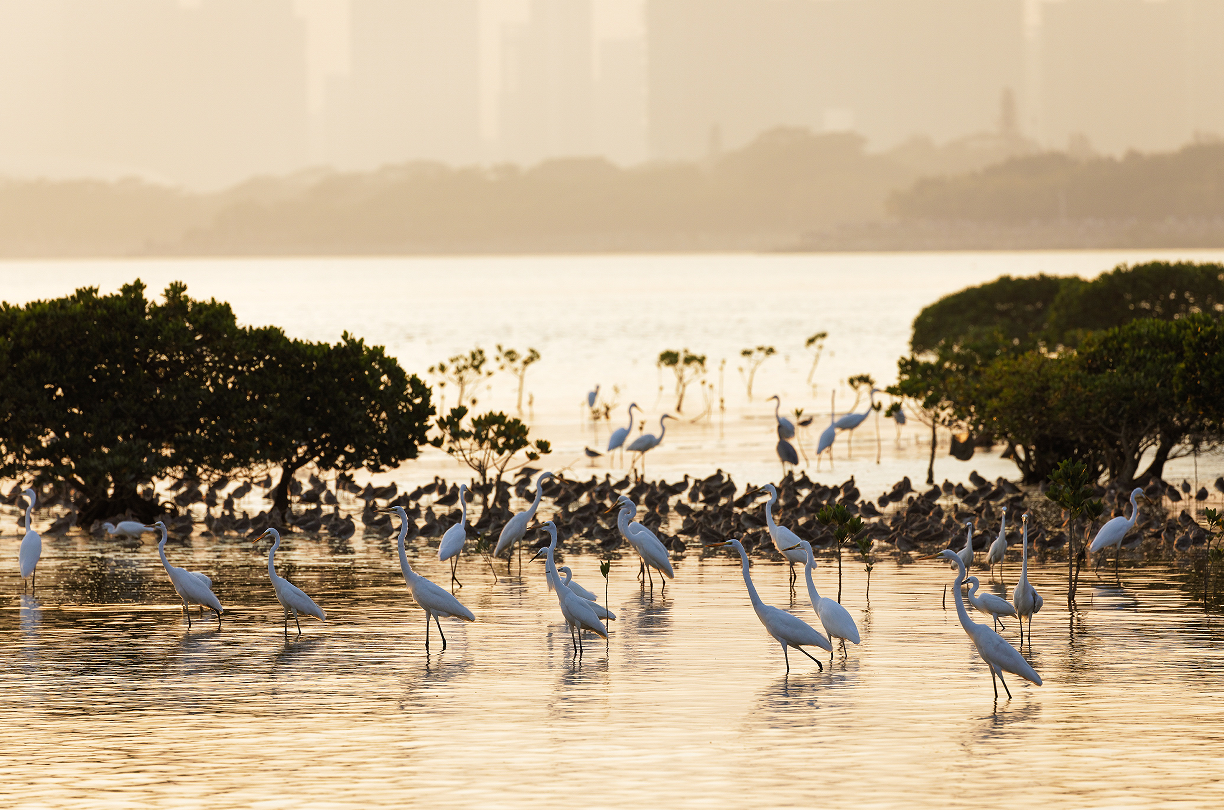 深圳湾的水鸟与红树。