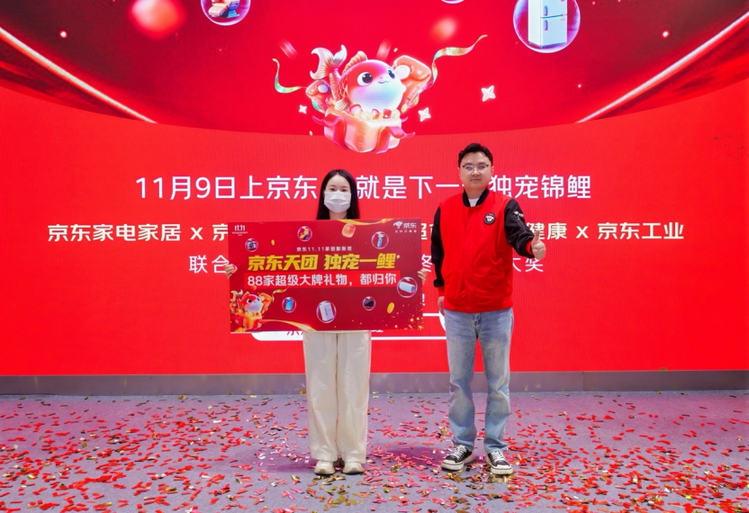 近日,京东在深圳京东MALL为“11.11家倍膨胀夜”活动的首位“独宠锦鲤”温女士举行了颁奖典礼。根据规则,温女士将获得由三星、美的、老板、飞利浦等多个品牌联合送出的88件奖品,涵盖家电、家居、3C数码、生活用品等多个类别。