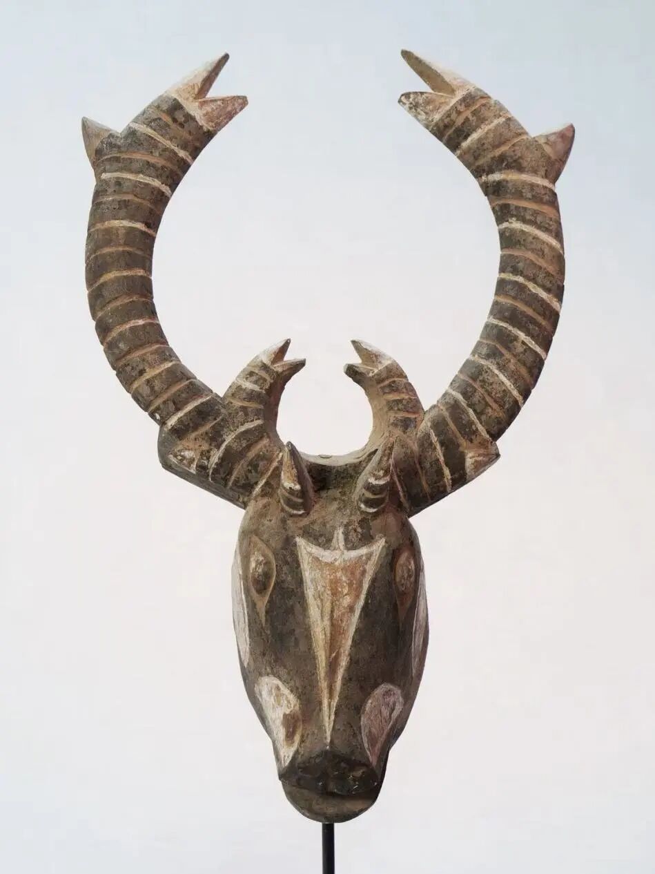 展览的第一脉络,由收藏家袁继新先生提供的四十五件实物面具、五件图腾柱构成。它们来自西非茂密的雨林与东南亚绵长的海岸,凝结着“全球南方”丰富而多元的精神世界。这些面具并非静默之物,而是曾活跃于生命仪轨的现场——作为沟通人神的媒介、凝聚社会记忆的载体,构筑起一部可触可感的“文明档案”。