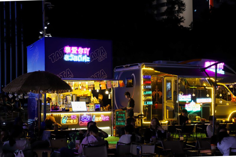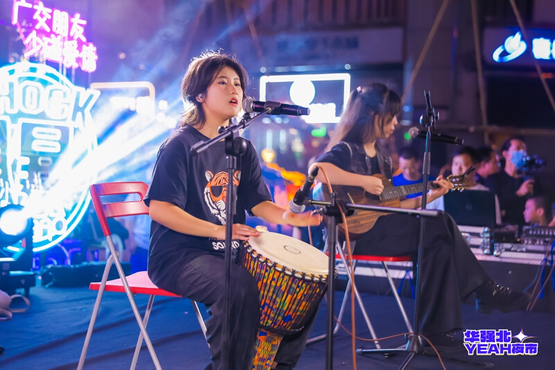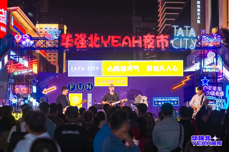 在华强北Yeah夜市活动现场,市民能尽情享受从摇滚到民谣等一系列主题音乐的欢乐派对。酷炫的科技餐车流动在街道旁,热情地提供各式小吃美食。