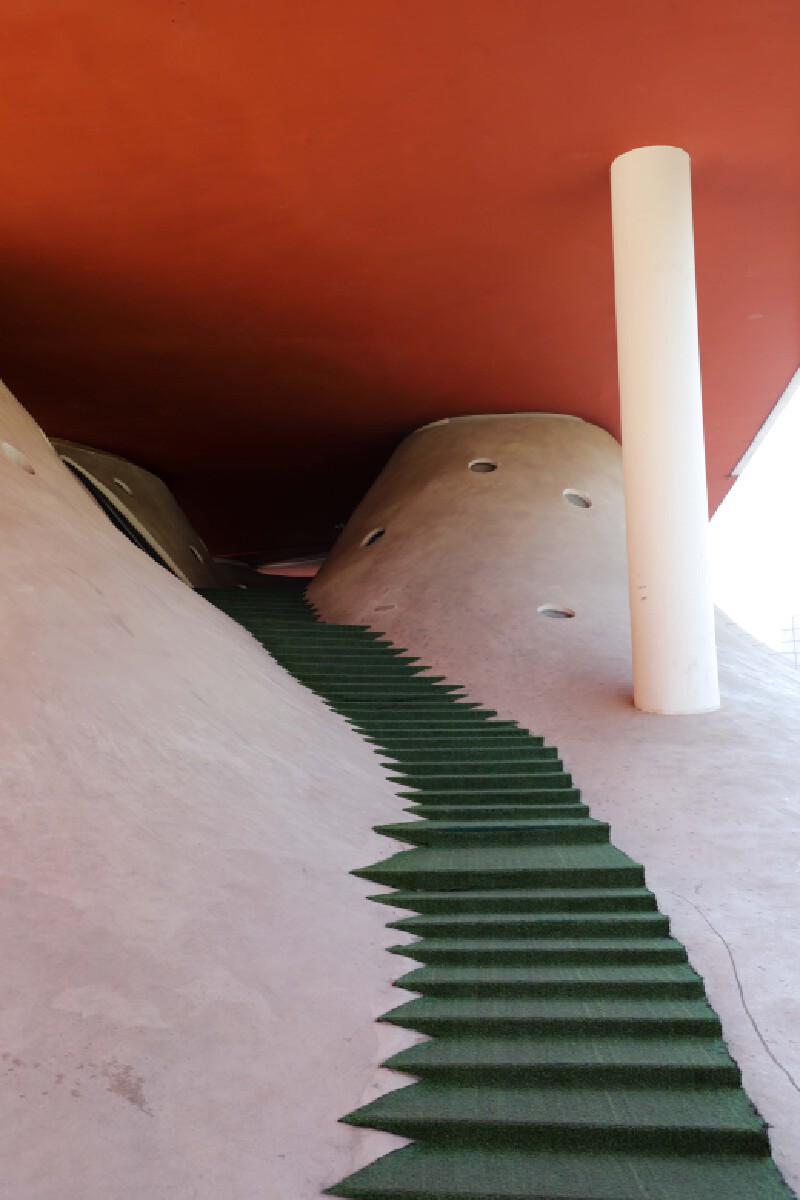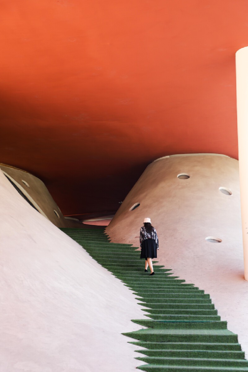 山丘一样连绵起伏的坡道与三楼的橙色外墙巧妙组合成可爱的“蘑菇房”,这条通往“蘑菇星球”的绿荫之路是不少文艺市民的拍照打卡点。