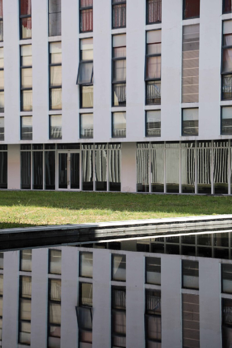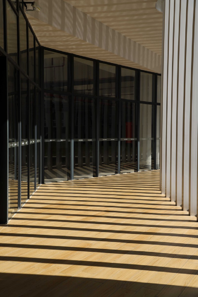 美术馆室外采用独具艺术感的建筑设计风格,运用光影线条与极简色块碰撞出极致的空间之美。