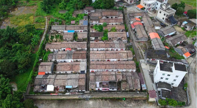 洋坑古寨,又称赤石洋坑古寨,坐落于赤石街道新城洋坑村,为典型的围寨式古村落。整座古寨坐东南朝西北,由四面寨墙围合成长方形寨堡,四角原设有角楼,寨内现存16排民居,形成“三直街九横巷”的街巷格局。建筑通面阔70.96米,总进深91.15米,占地面积约6468平方米,总建筑面积约4120平方米。