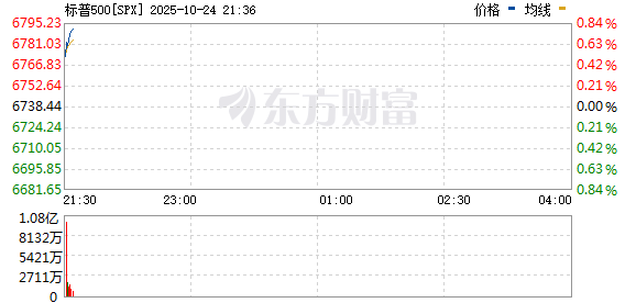 10月24日,美股三大指数集体高开,道琼斯指数向上触及47000点,最新报47001.27点,日内上涨0.57%;标普500指数涨0.67%,报6772.07点;纳斯达克综合指数涨幅扩大至1.04%,刷新历史新高。