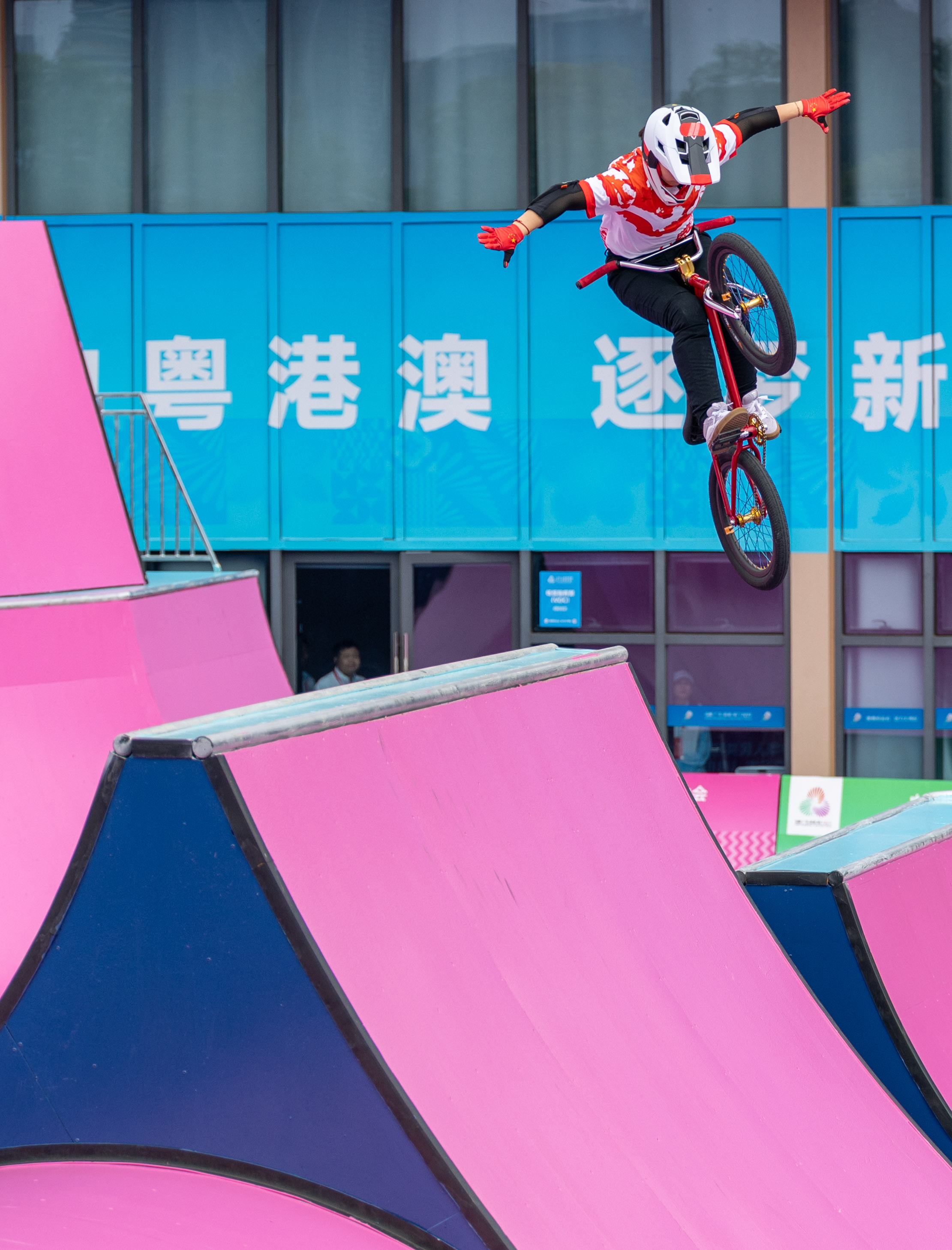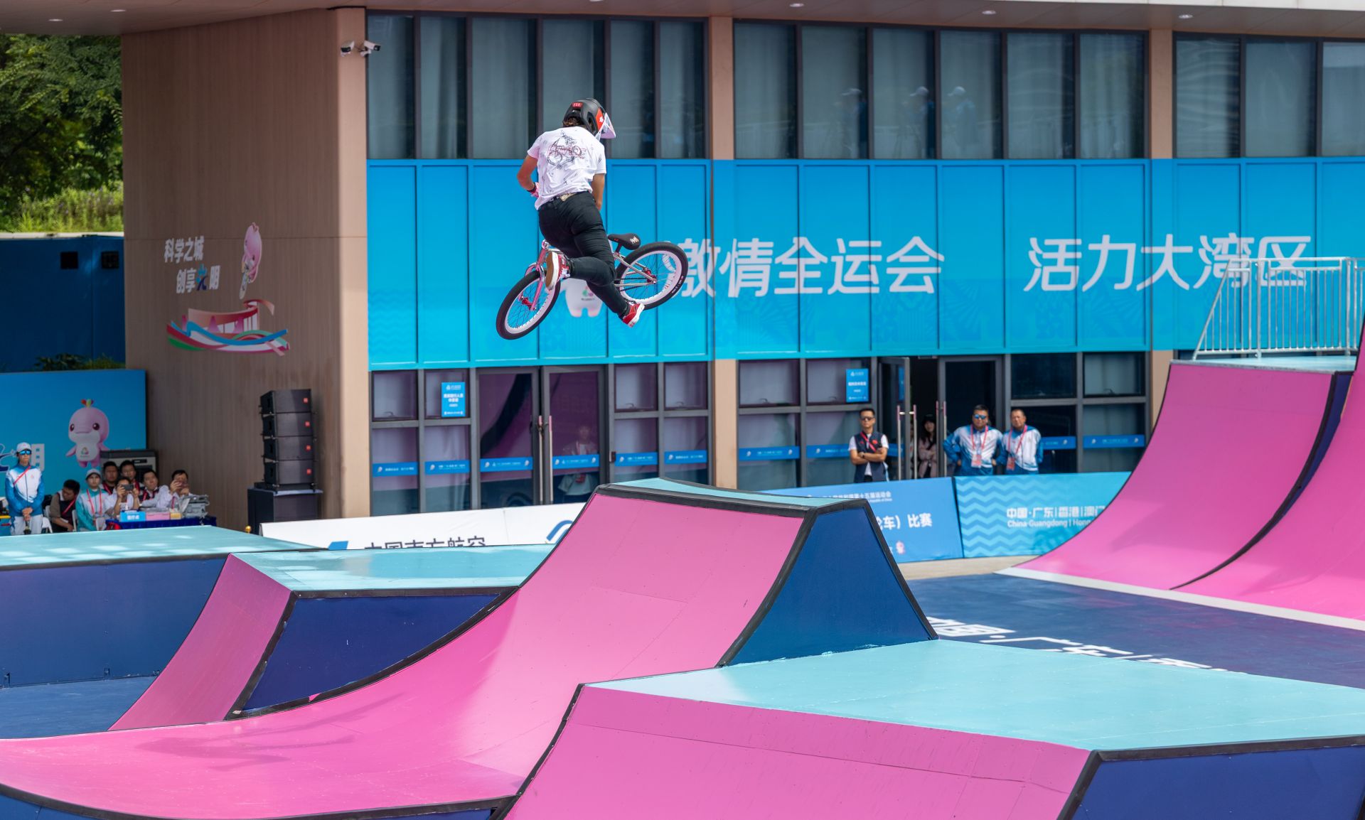 10月24日,第十五届全国运动会自由式小轮车比赛在深圳市光明区虹桥公园正式拉开战幕。来自广东、河北、河南等地的9支参赛队伍的44名顶尖车手齐聚于此,在赛场上展开激烈角逐。