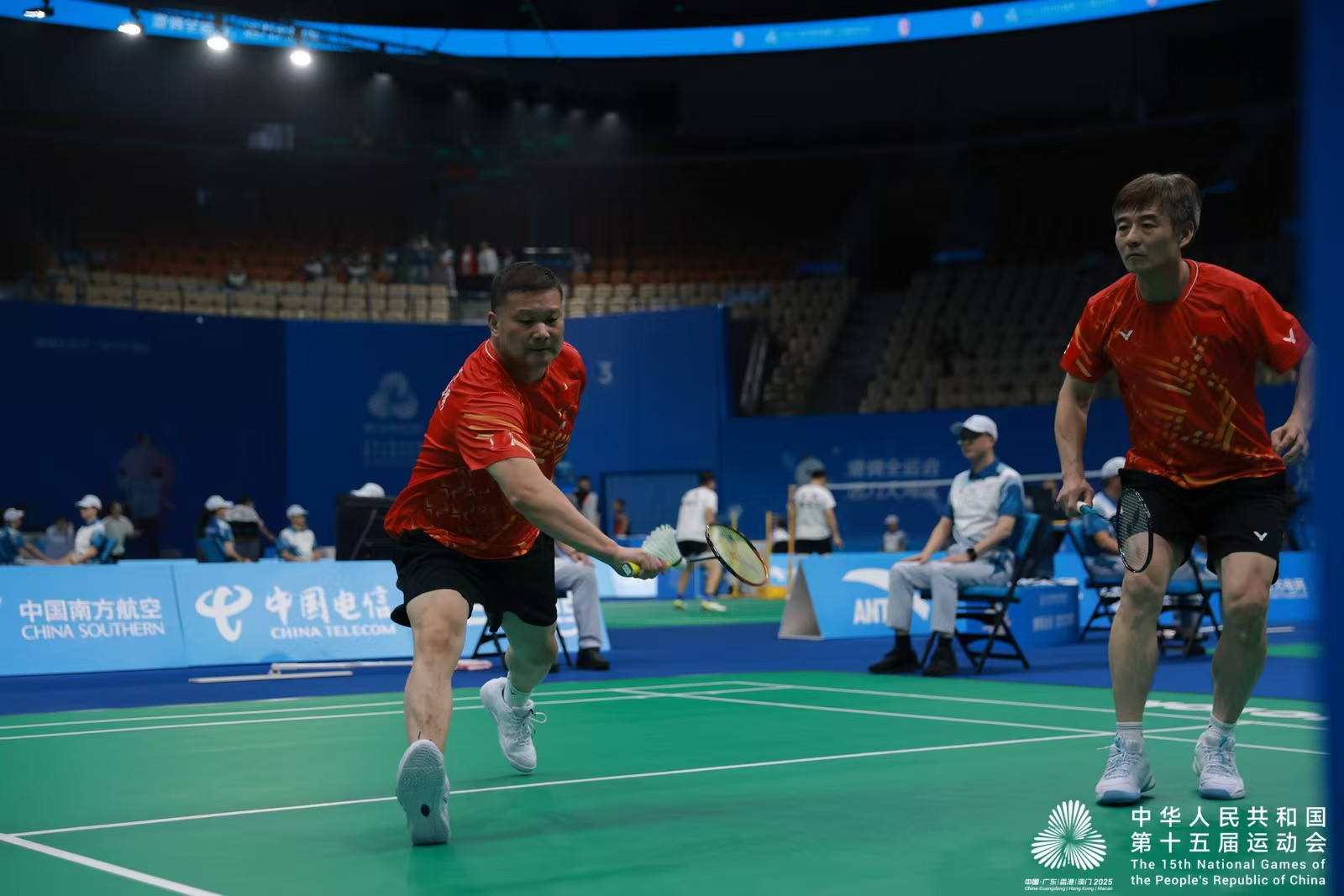 单项比赛中,广东队收获一金一银。王明基/李钧照在D组男双决赛上,以2:0战胜福建队的李昆/贾雪涛,为广东队添上一枚金牌。比赛中第二局,王明基/李钧照以20:17率先拿到赛点,但三度被追平,经历波折最终以24:22拿下胜利。王明基赛后表示,打到加分时,和搭档都始终坚信能拿下比赛,“我们有信心有实力的同时,最后‘幸运’也眷顾了我们。”两位运动员都是第二次参加全运会,能实现在主场登上最高领奖台,李钧照直言“格外高兴”。此外,在单项比赛中,广东队的颜静熙/邢福星还得到了B组男双亚军。