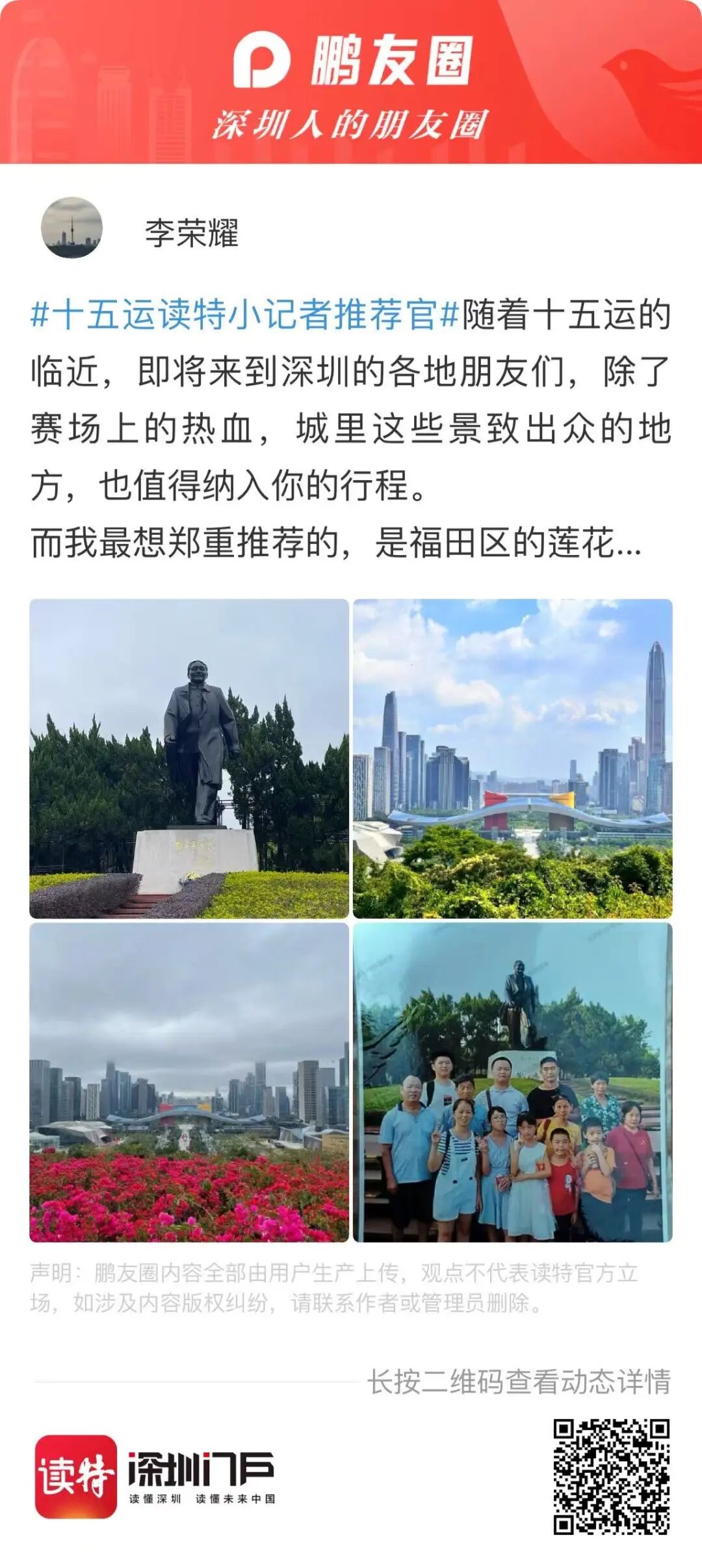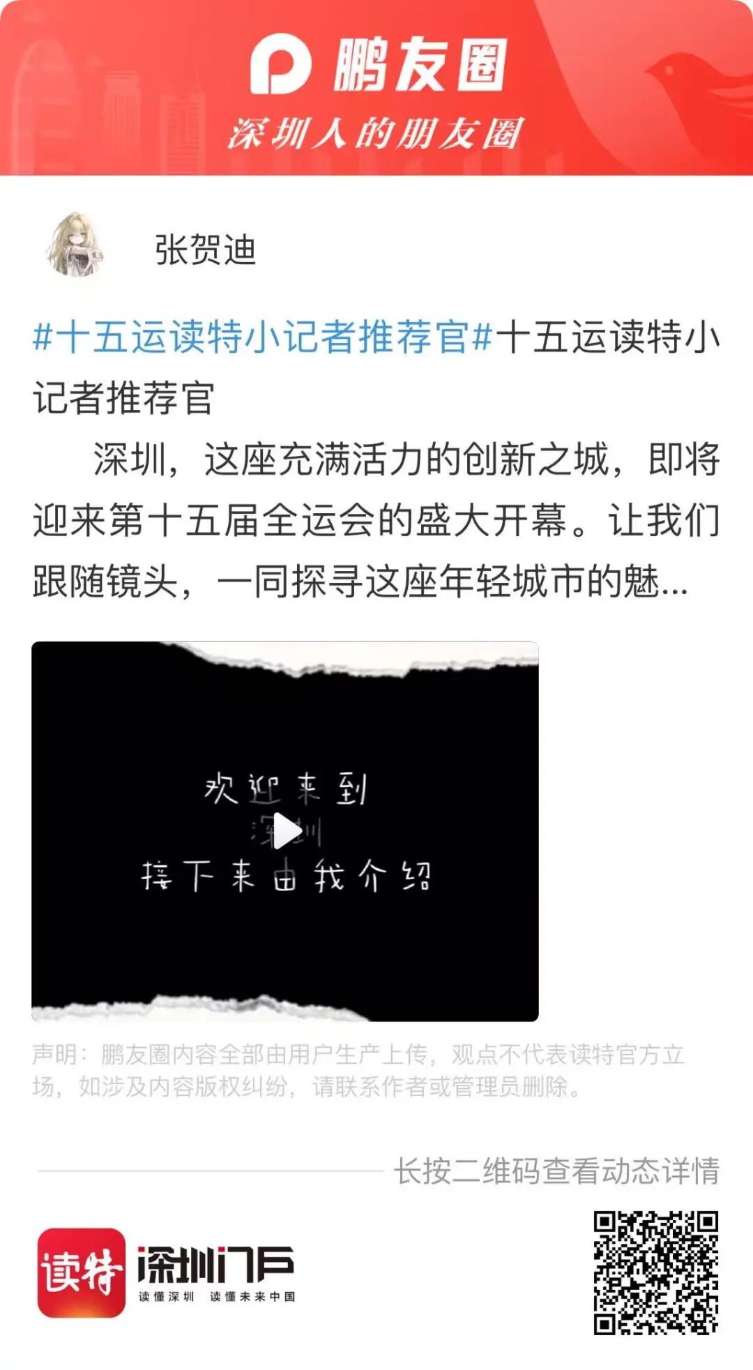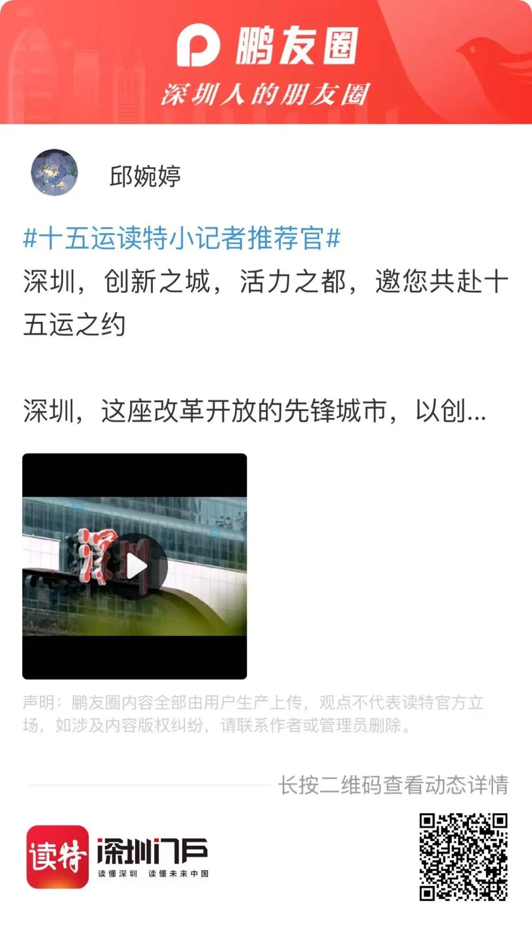 长按下方二维码,参与“十五运读特小记者推荐官”活动~快来用你的视角推荐深圳吧!