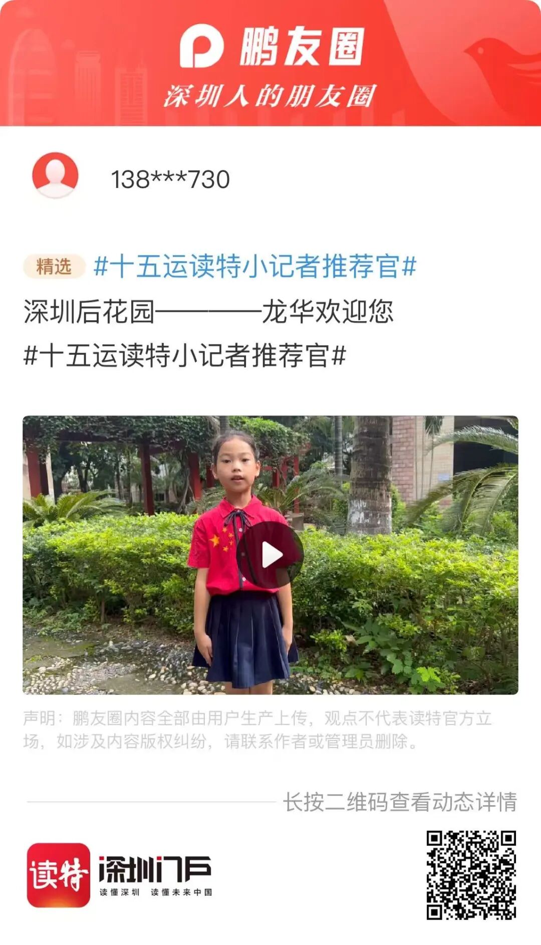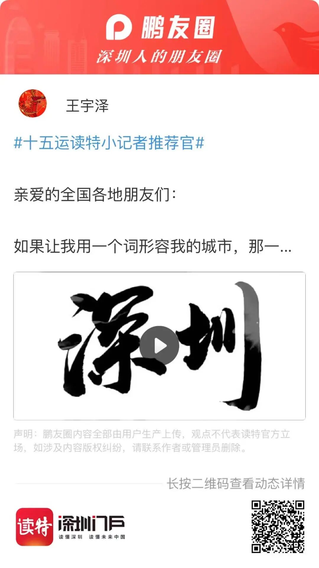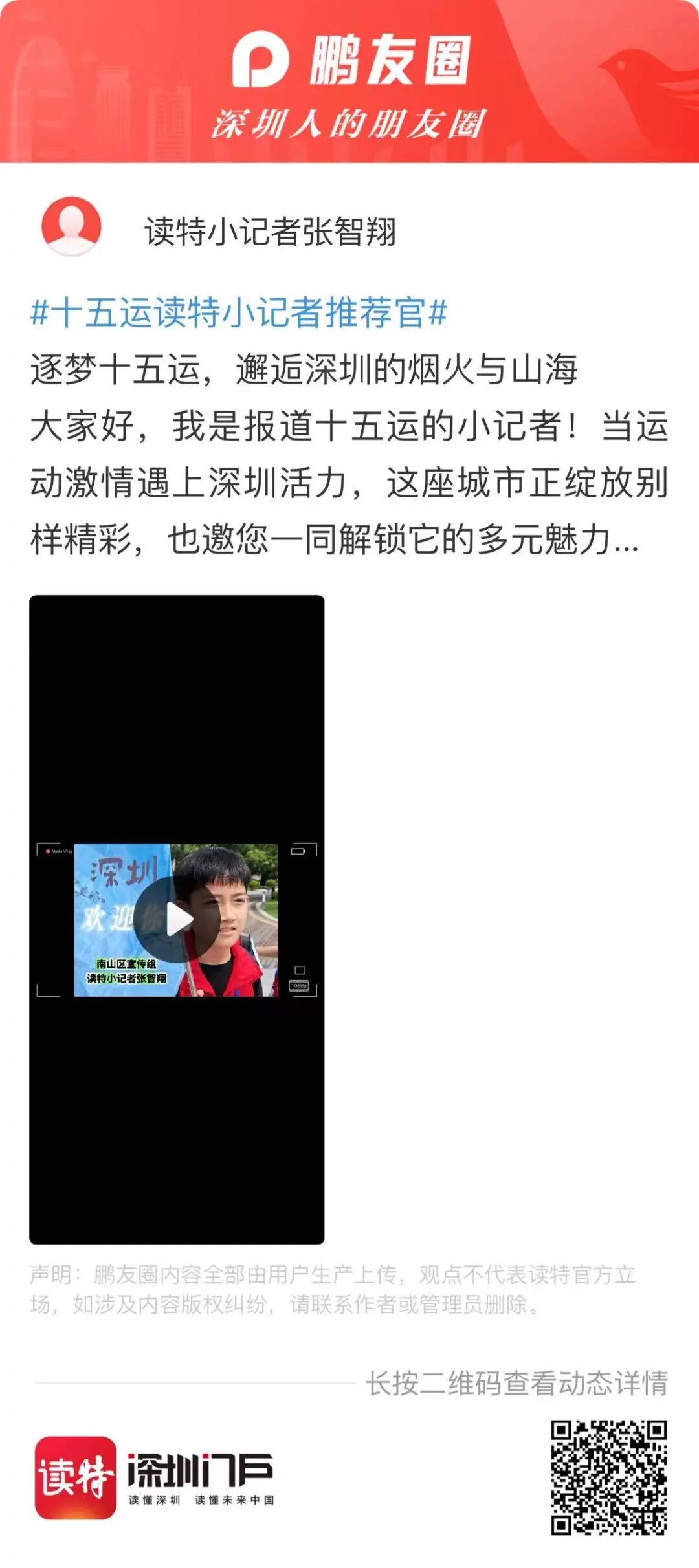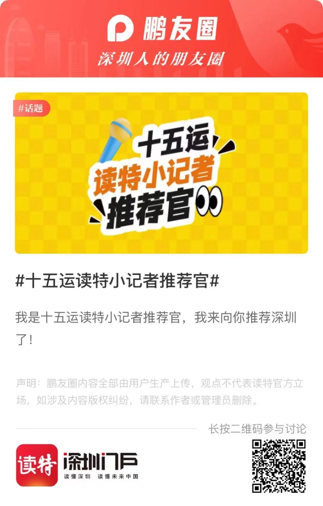长按下方二维码,参与“十五运读特小记者推荐官”活动~快来用你的视角推荐深圳吧!