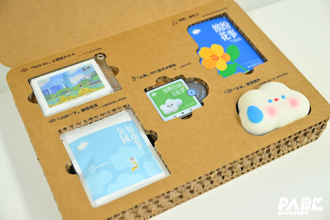 “深圳公园文化季-五感文创礼盒”作为深圳公园年度文化品牌“公园文化季”的衍生品,突破传统文创的单一视觉表达,通过光影卡、自然音景、特色香氛等多重元素,重现“20分钟公园疗愈时光”,呼应年轻人对沉浸式体验与情绪价值的追求,是深圳公园文化品牌从活动体验到产品转化的重要尝试。