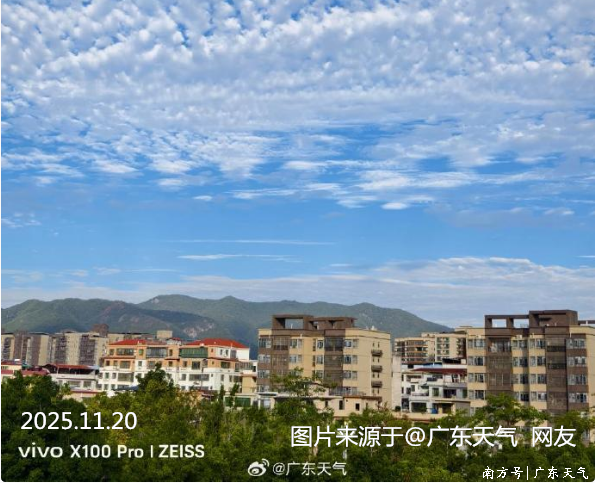 20日,广东中北部市县多云转晴天,南部沿海市县零星小雨转多云,其余市县阴天转多云间晴天。