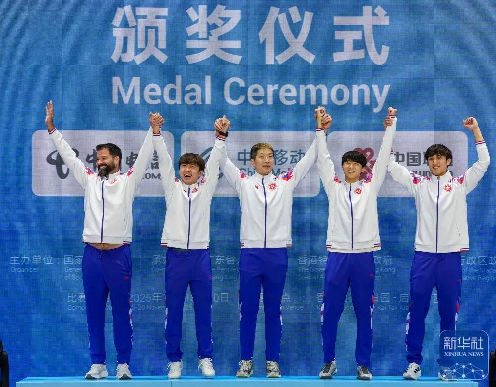 ● 2025年11月19日,第十五届全国运动会击剑男子花剑团体金牌赛,梁千雨、蔡俊彦、张家朗、吴诺弘组成的香港队以45-34战胜福建队,获得冠军。