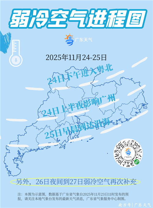 25日,南部沿海市县多云转晴,其余市县晴到少云。最低气温:粤北偏北市县9~12℃,南部沿海市区16~20℃,其余市县12~15℃。