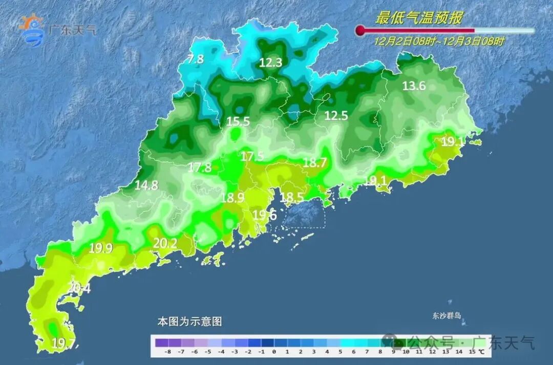12月3日起,受中等偏弱冷空气南下影响,全省气温将小幅下降。清远、韶关北部及南部沿海仍有分散零星小雨。