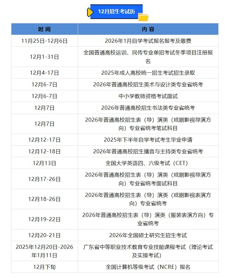 步入12月,意味着新的一年的脚步越来越近了。本月成人高校招生录取、全国硕士研究生招生考试将正式启动,还有哪些不能错过的招考热点?一起来看看↓↓