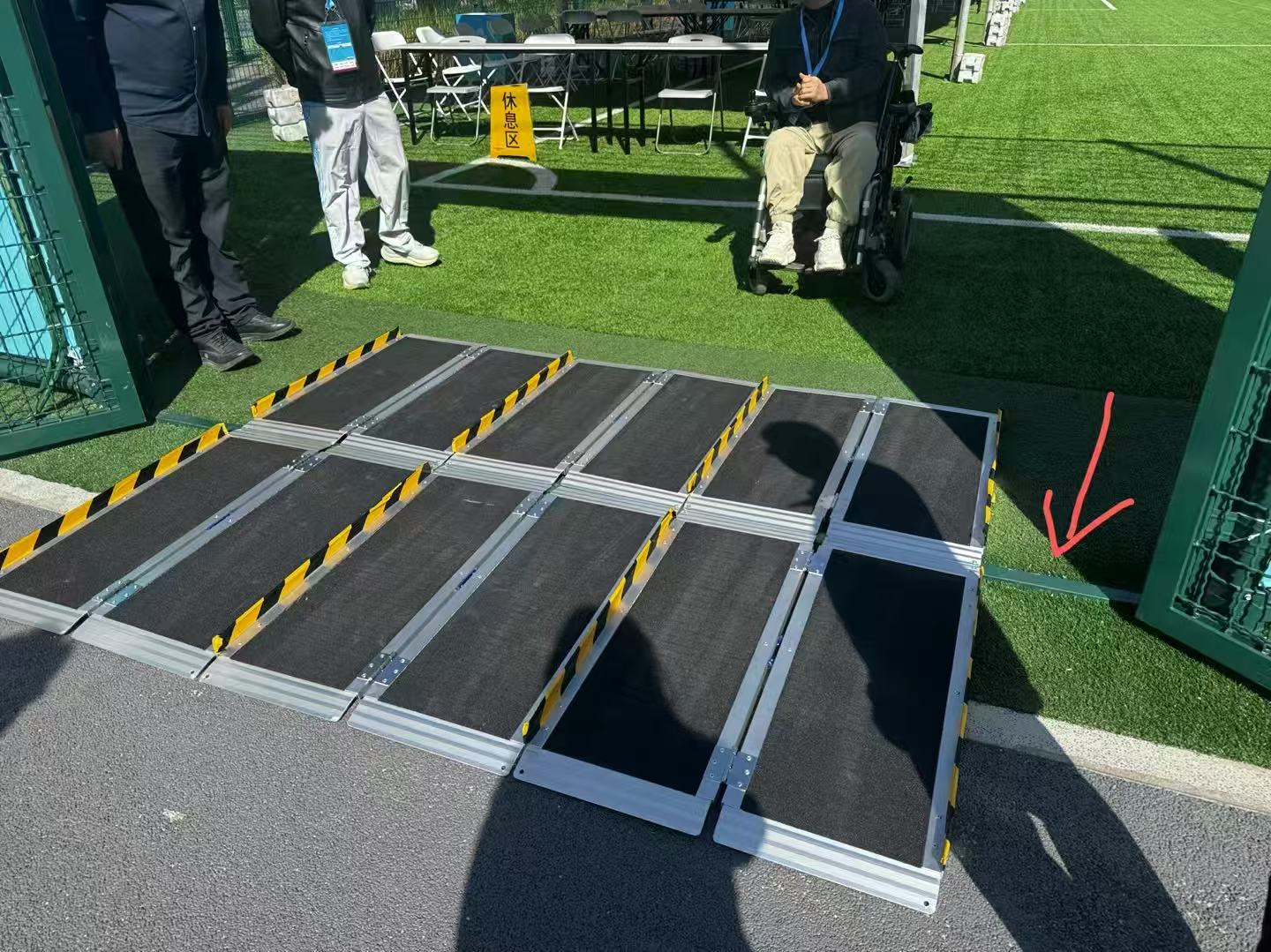 从运动员抵达的第一刻起,细致周到的服务便如影随形。赛区配备了无障碍公交巴士,车上的折叠板与特制坡道连接,工作人员默契配合,精准停车、放置坡道、协助上车并固定轮椅,一系列操作流畅而安稳。运动员抵达场馆后,清晰的无障碍标识引导最优路径,志愿者们随时准备提供协助。