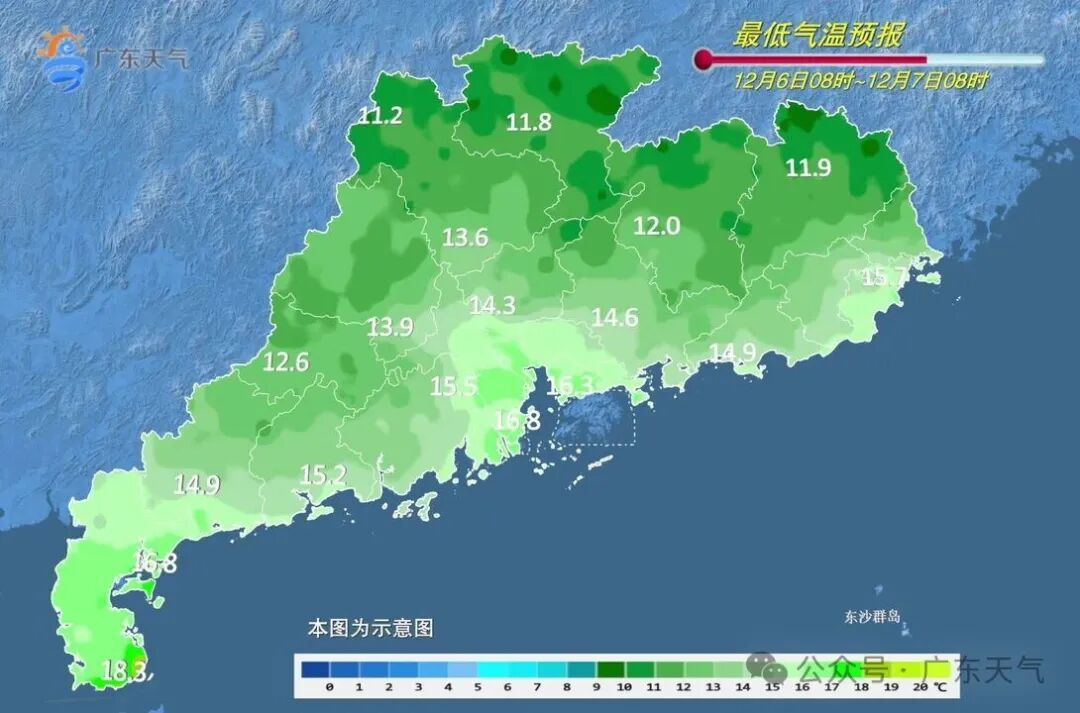 不过,“晴燥”的另一面是早晚寒凉。6日至7日,粤北及珠三角北部市县最低气温仅7-10℃,其余市县11-14℃;8日气温略有回升,但粤北最低气温仍在9-12℃。