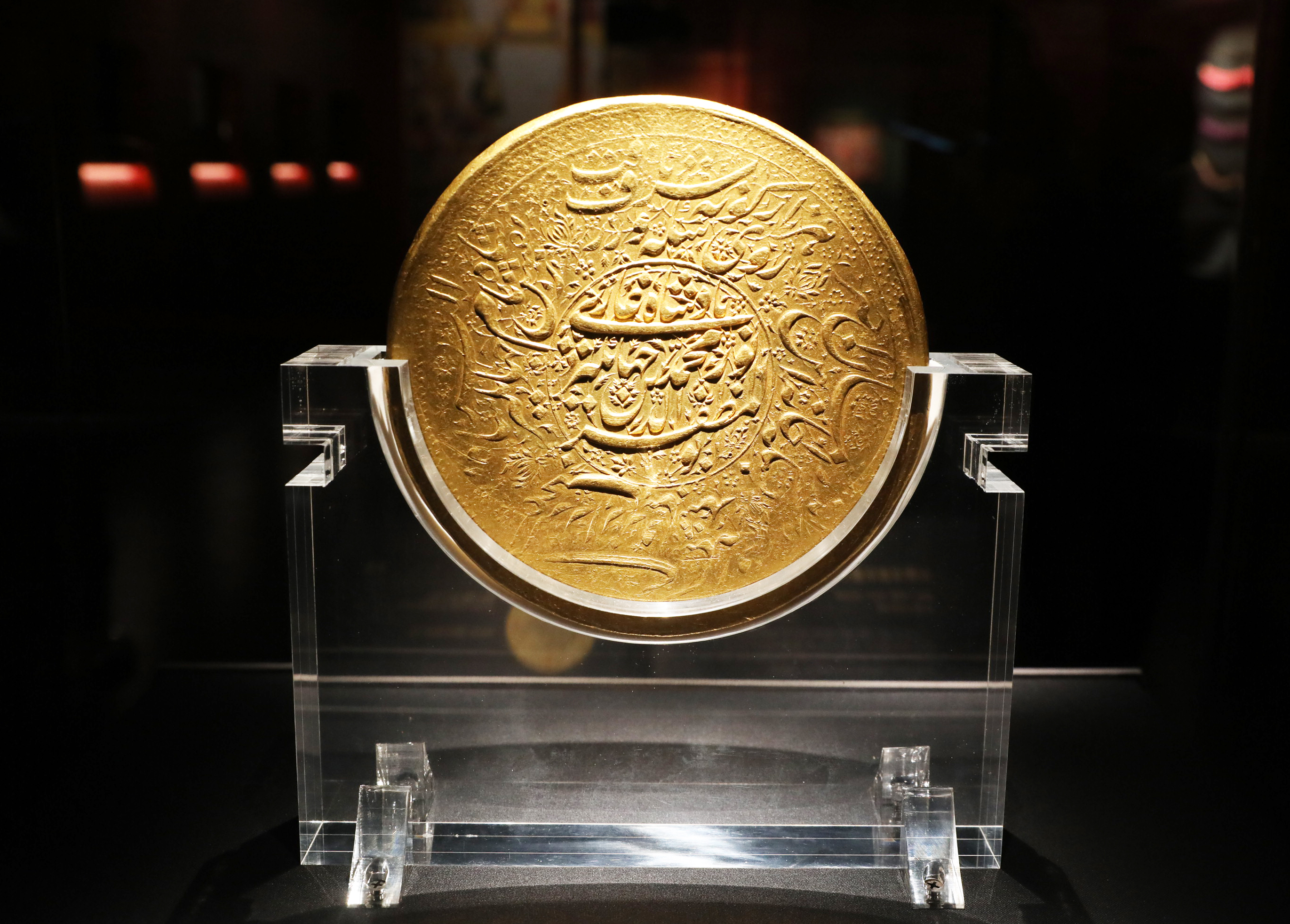 展览分为“莫卧儿的传奇历史”和“多元瑰丽的莫卧儿艺术”两个篇章,系统呈现莫卧儿历史、艺术与社会生活。重要展品有刻有皇室铭文的尖晶石、以贾汉吉尔皇帝名义发行的金币、采用“昆丹工艺”镶嵌的珠宝配饰和宫廷用品,以及纹样精美的各式织毯,全方位展现莫卧儿文明的多元魅力。