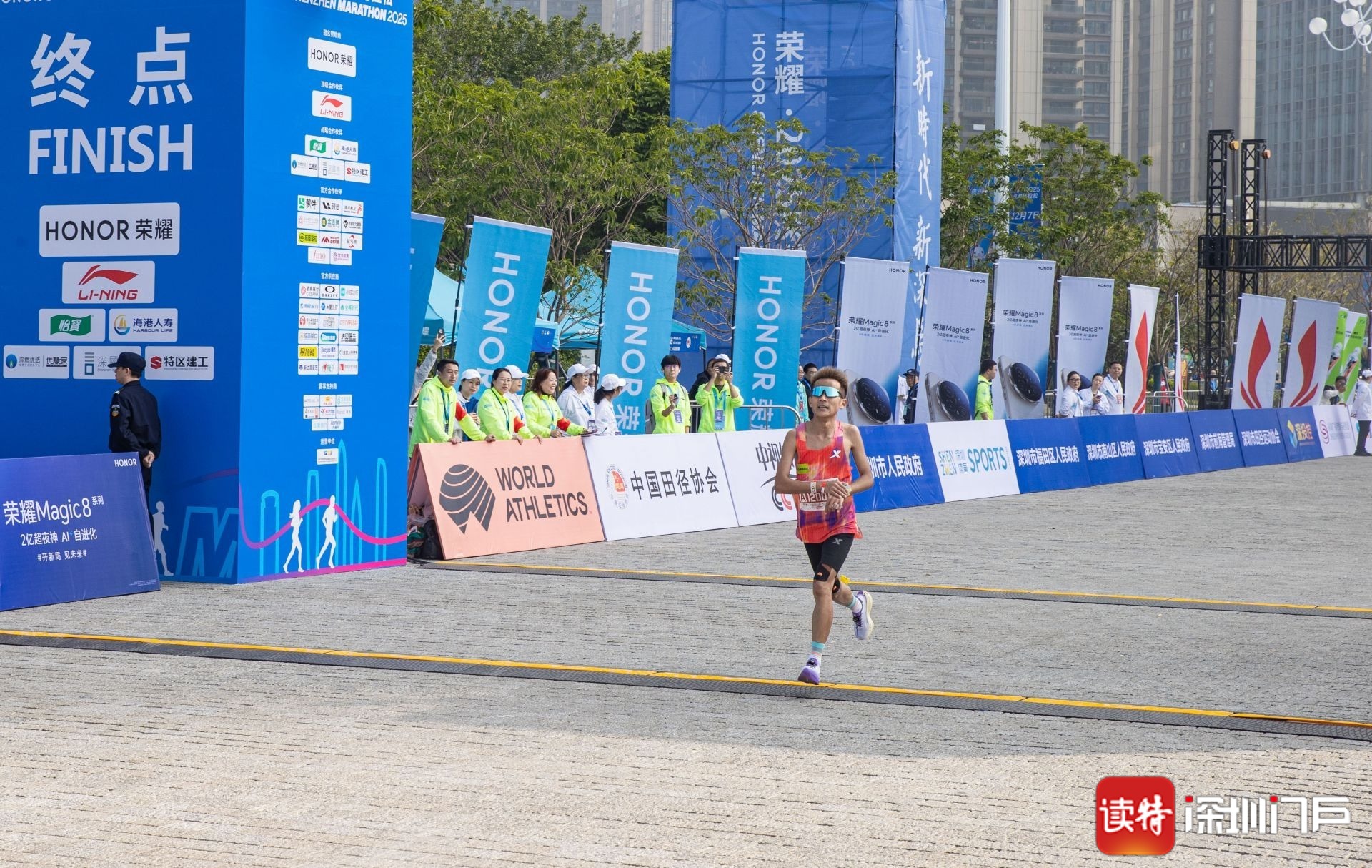 12月7日9时许,荣耀·2025深圳马拉松第一位冲线的选手诞生——来自埃塞俄比亚的选手GEBI以2小时9分12秒获得男子第一名。同样来自埃塞俄比亚的选手AMID以2小时26分14秒的成绩夺得女子第一名。