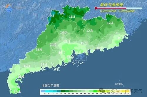 其中,8日南部市县多云间晴,其余市县晴到多云,粤北最低气温在9-12℃之间。