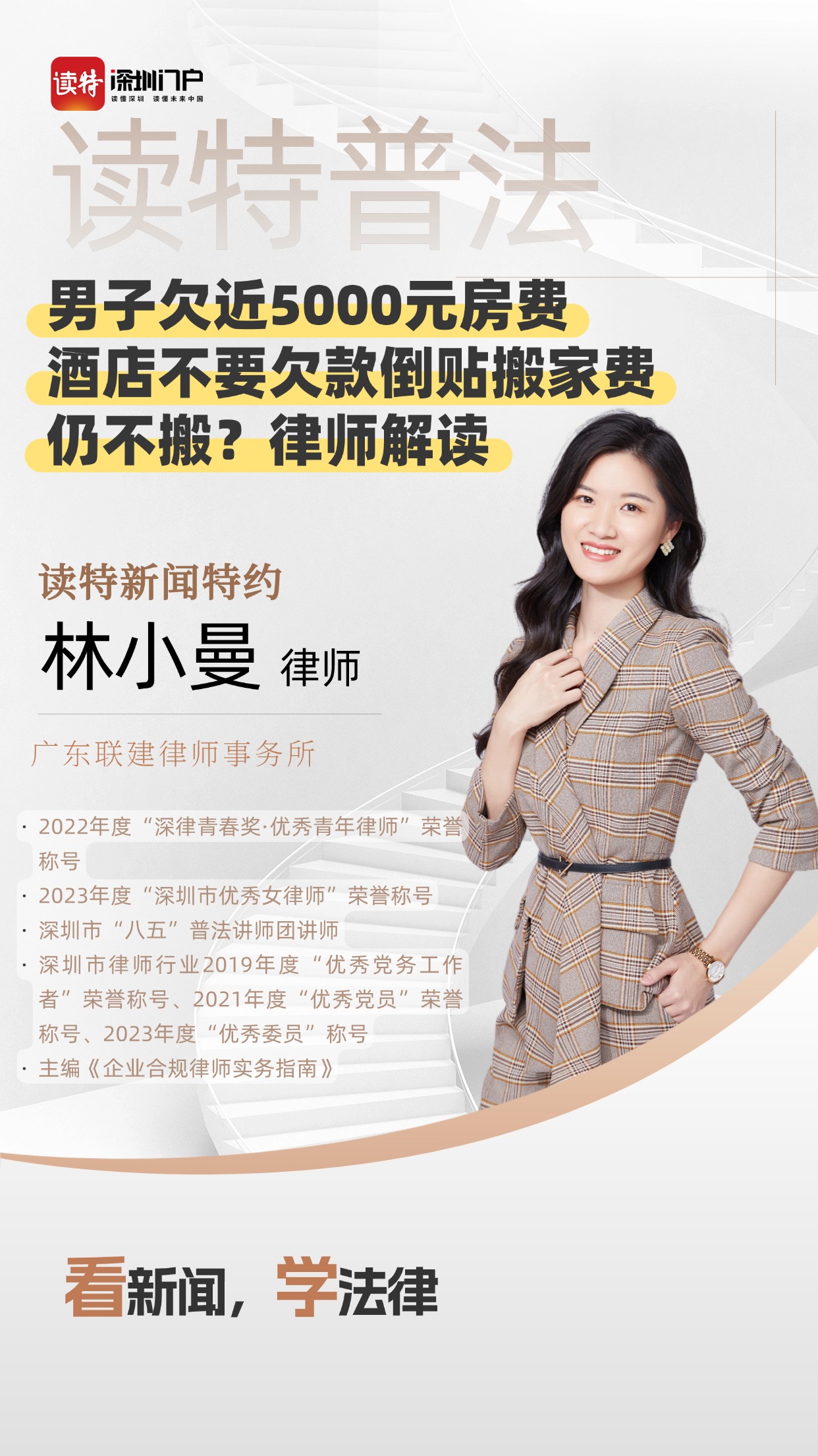 近日,“重庆一男子欠近5000元房费,酒店倒贴500元搬家费仍不搬”事件引发热议。不少网友纷纷表示不理解“把东西收拾完扔门口不行么”,“这种警察不能驱离吗?”对此,本期《读特普法》邀请广东联建律师事务所的林小曼律师进行解读。