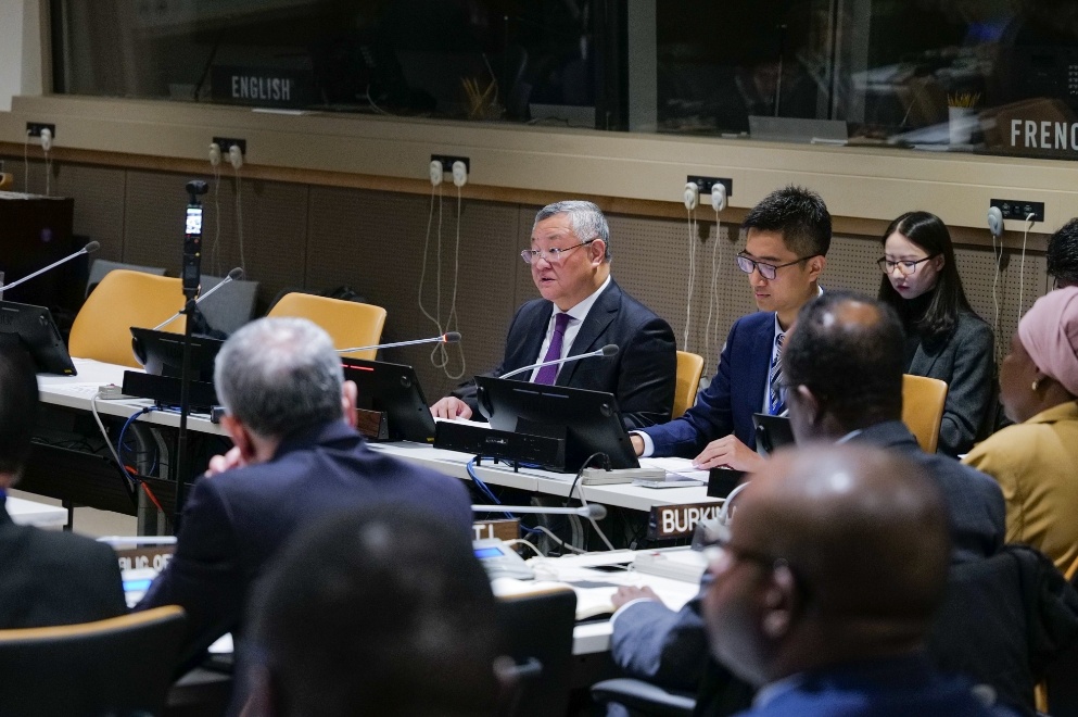 当地时间12月9日,中国常驻联合国代表团在纽约联合国总部举办“全球治理之友小组”启动会议,之友小组正式成立。中国常驻联合国代表傅聪大使主持会议,来自世界各地区近40个之友小组创始成员国代表与会。