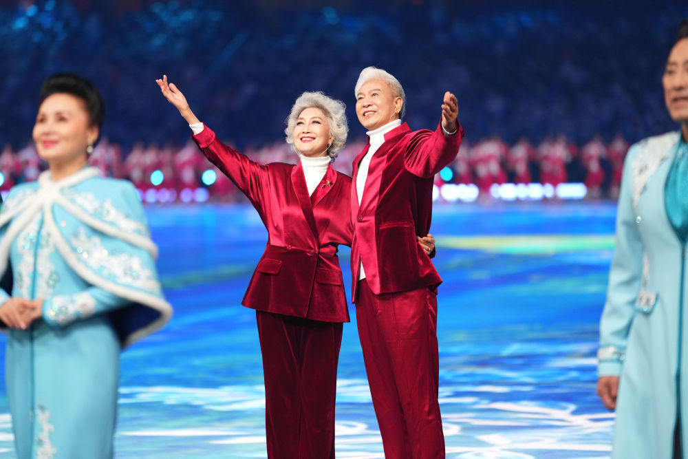1月22日,演员在北京冬奥会开幕式彩排表演中。