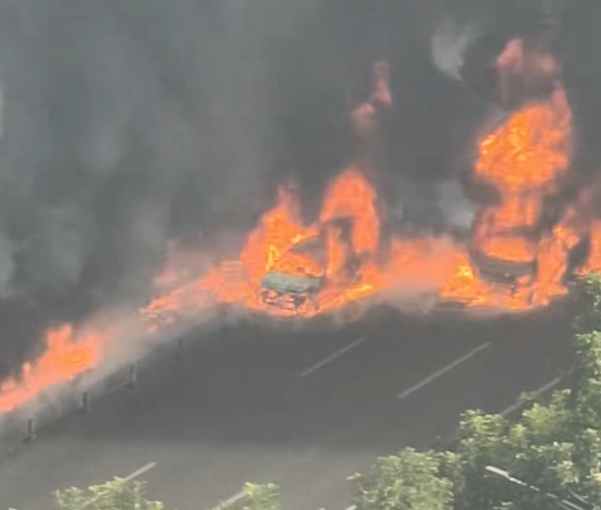 据视频画面显示,小货车自燃后,周边机动车道及人行道上的绿化设施出现火势,火势延绵几十米左右。14时许,消防车抵达现场,将火扑灭。事故具体情况有待消防部门通报。