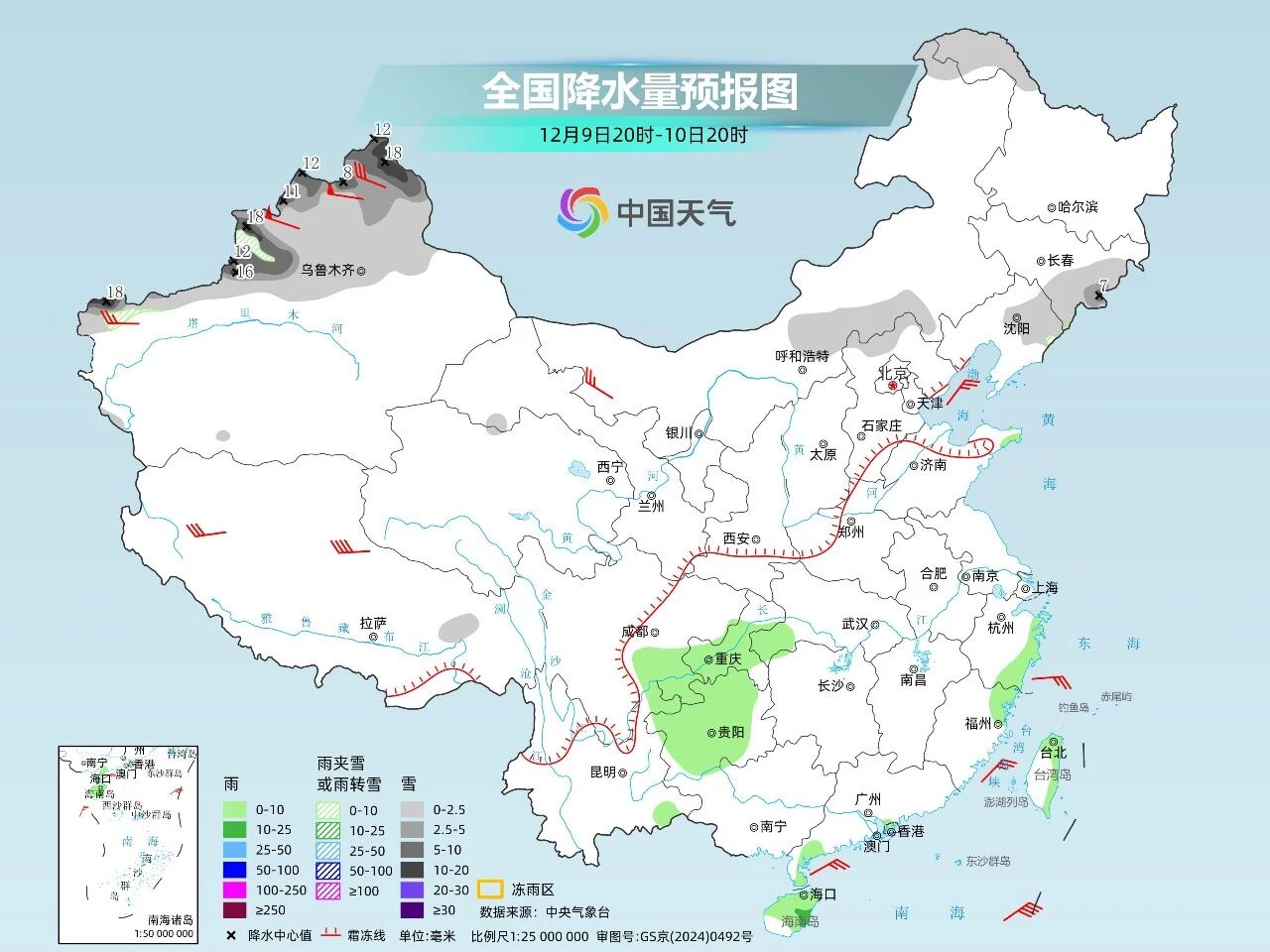 明天(12月10日),寒潮天气将率先在新疆发力,新疆北部的降雪将明显增强。其中,新疆北部、吉林东南部等地部分地区有大到暴雪。